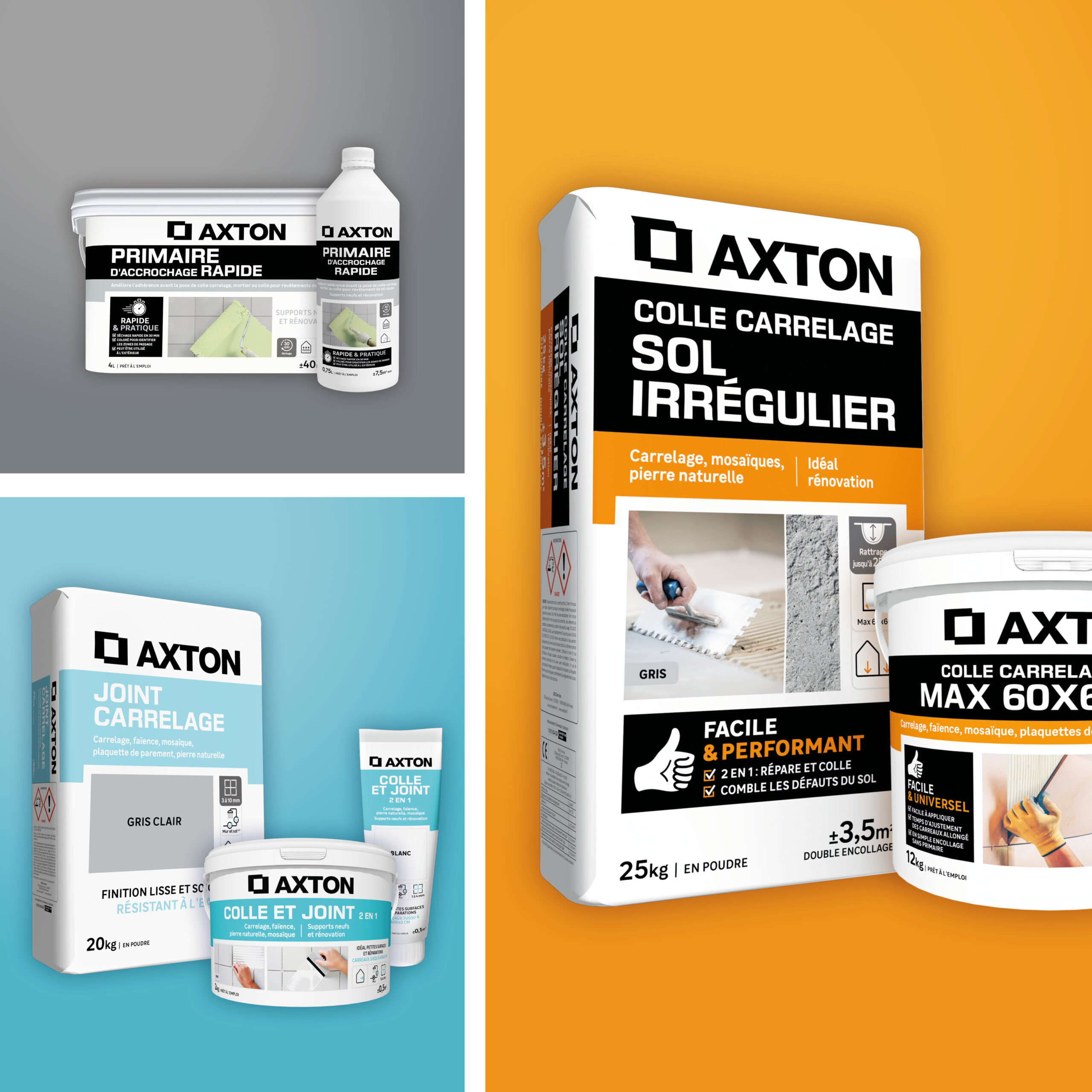 Packaging gammes peintures, vitrificateurs et colles / électricité / plomberie / menuiserie.